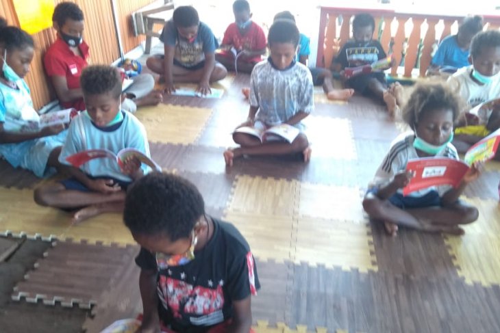 Papuan children in Yoboi village, Sentani studying amid a pandemic at Onomi Niphi Reading House (ANTARA / HO-Doc Hanni Felle)